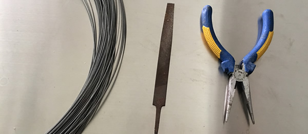 50cm長的鐵絲、鐵鉗、銼刀