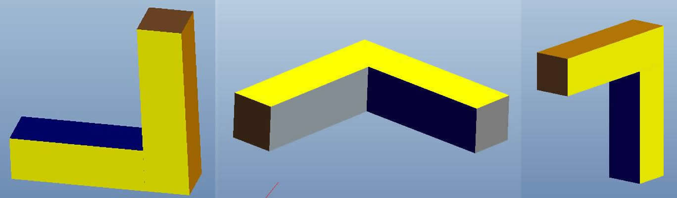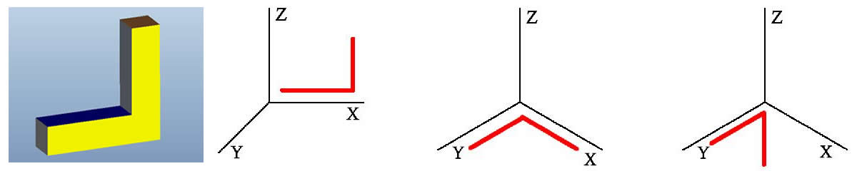 2、畫出下面這個L形方條的立體圖,讓它的兩根方條分別與坐標系中的坐標軸大致平行(如圖中紅色線條所示方向)