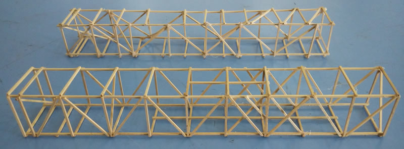 【實(shí)驗(yàn)?zāi)康摹?br /> 1、獨(dú)立設(shè)計(jì)制作桁架結(jié)構(gòu)梁,探索桁架梁的各個(gè)部分的受力和變形特點(diǎn)。
