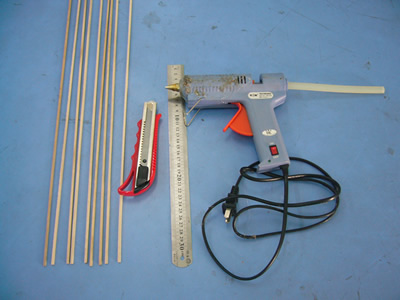【實(shí)驗(yàn)材料】小木條、熱熔膠、小刀、鋼尺