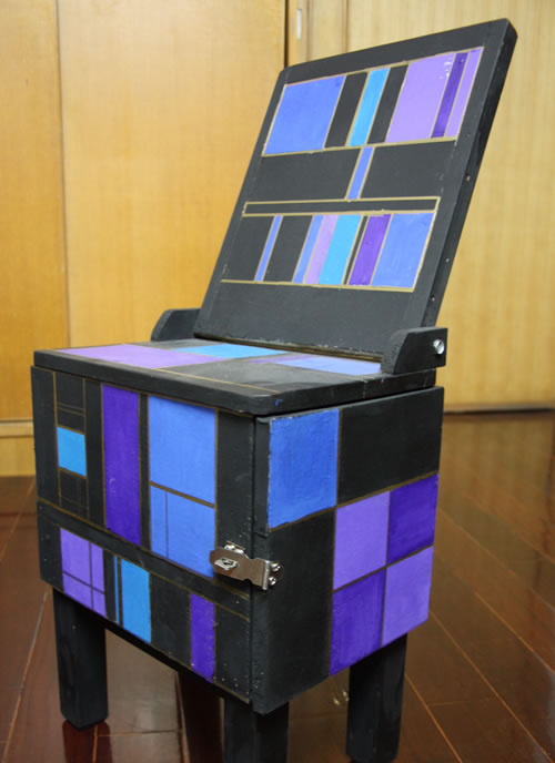 我們的課室空間有限,但作為高中生,我們總是有很多教科書,課桌的抽屜放不下太多東西,于是有限的空間就變得十分擁擠,這給師生的活動都帶來了許多不便。同時,當(dāng)我們有一些比較重要的物品需要放在學(xué)校的時候,放在抽屜就顯得有些不夠安全??紤]到我們的椅子下方還有可以利用的空間,所以我決定對其進(jìn)行改造,安裝一個帶鎖的收納箱,方便我們的生活。而午休期間,由于環(huán)境限制,同學(xué)們的休息并不能起到消除疲憊的作用。如果將椅背設(shè)計為可調(diào)的躺椅式,將會使使用者倍感舒適。所以我將椅背設(shè)計為用螺絲與坐板連接,輕輕扳動即可調(diào)節(jié)椅背傾斜角度。
