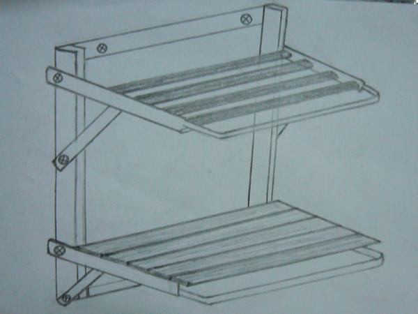 3、當(dāng)要使用時,只需把要使用的那層折到水平位置,然后用該層左右的兩根小斜梁把它支撐固定,運用三角形原理使架子變得非常穩(wěn)固。