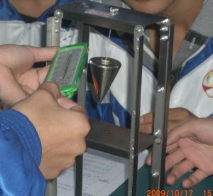 在塑料瓶的外壁兩邊開了兩條槽,在槽中穿過一根螺栓,為了增加重量螺栓上套有螺母,螺栓可在瓶壁上上下移動,從而改變重心的高低。巧妙的是利用長方形餅干盒做成了試驗(yàn)平臺,在盒的有鉸接的一面裝有量角器,當(dāng)掀起盒蓋時(shí),能在不同的位置讀出盒面傾斜的角度,學(xué)生在做試驗(yàn)時(shí)把塑料瓶中的螺栓放在高、中、低的位置,分別放在餅干盒做成的平臺上試驗(yàn),不但能得出重心高底對穩(wěn)定性的影響,而且還可以量化,達(dá)到了很好的試驗(yàn)效果。