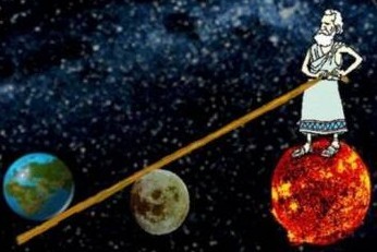 阿基米德在天文學(xué)方面也有出色的成就。他設(shè)計(jì)了一些圓球,用細(xì)繩和木棒將它們聯(lián)接起來模仿日月和星辰的運(yùn)動,并利用水力使它們轉(zhuǎn)動。這樣日食和月食就可以生動的表現(xiàn)出來了。阿基米德認(rèn)為地球是圓球狀的,并圍繞著太陽旋轉(zhuǎn),這一觀點(diǎn)比哥白尼的“日心地動說”要早一千八百年。限于當(dāng)時的條件,他并沒有就這個問題做深入系統(tǒng)的研究。但早在公元前三世紀(jì)就提出這樣的見解,是很了不起的。