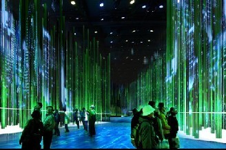 在中國館“低碳”展區(qū)的結(jié)尾部分,荷花與水簾組成動人的“感悟之泉”景觀,占地達250平方米。水簾上還能顯示出“天人合一”、“師法自然”、“和而不同”等成語。參觀者不僅可以看到“蓮葉何田田”的意境,也可在此進一步感悟中國城市和諧、美好的未來。