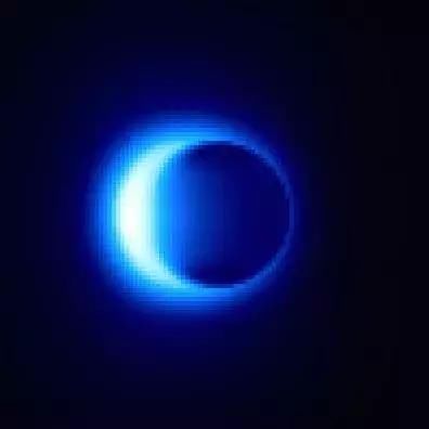 下圖是其中一種理論模型預(yù)言的銀心的黑洞陰影以及周圍環(huán)繞的新月狀光環(huán)。