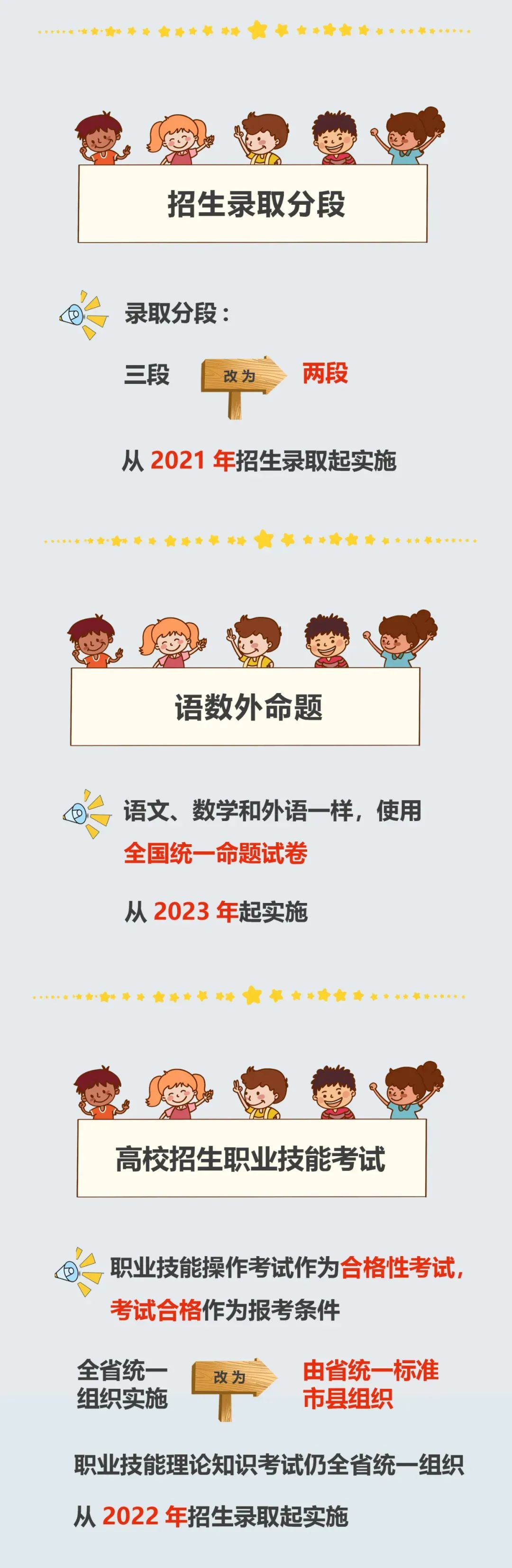 四、錄取分段由三段改為兩段,從2021年招生錄取起實(shí)施。