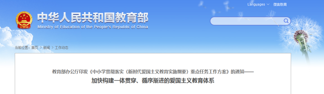 教育部印發(fā)《中小學(xué)貫徹落實(shí)〈新時(shí)代愛國(guó)主義教育實(shí)施綱要〉重點(diǎn)任務(wù)工作方案》