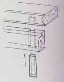 應(yīng)用部位:腳架與面板間的接合,▲ 用雙榫加固上部木框的接合,用短榫是為了不傷上框的榫頭。